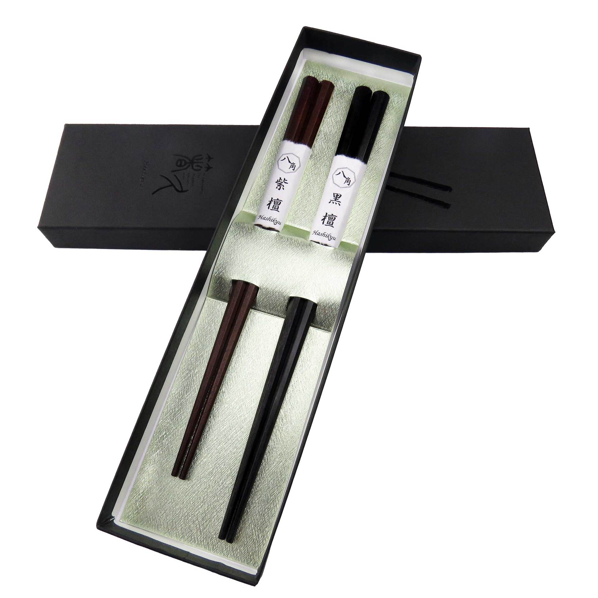 唐木三大銘木の黒檀と紫檀を箸先まで丁寧に八角に削って仕上げた夫婦セットです。