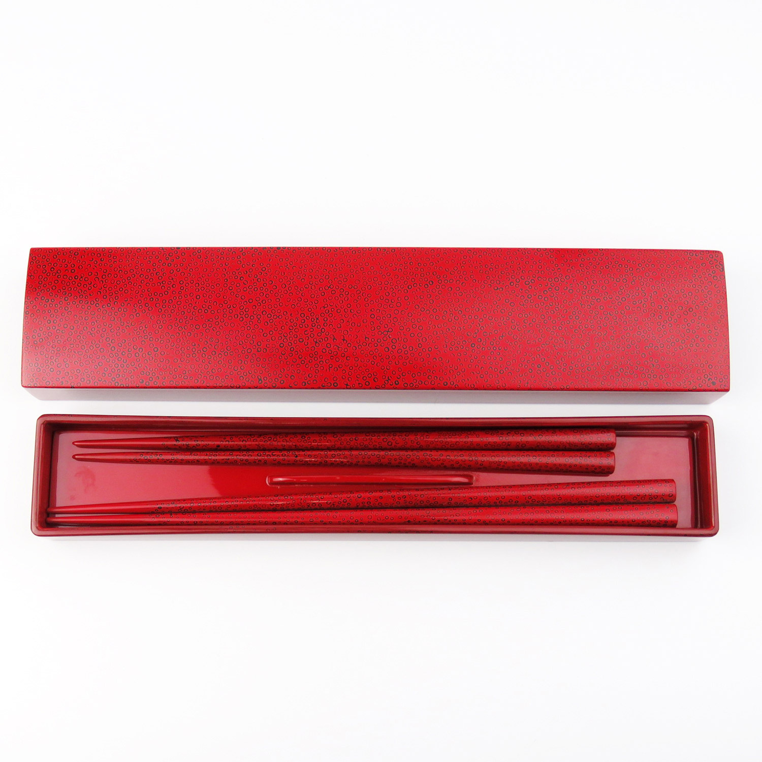 有名な技法の津軽七々子(ななこ)塗の夫婦箸と箸箱セット。