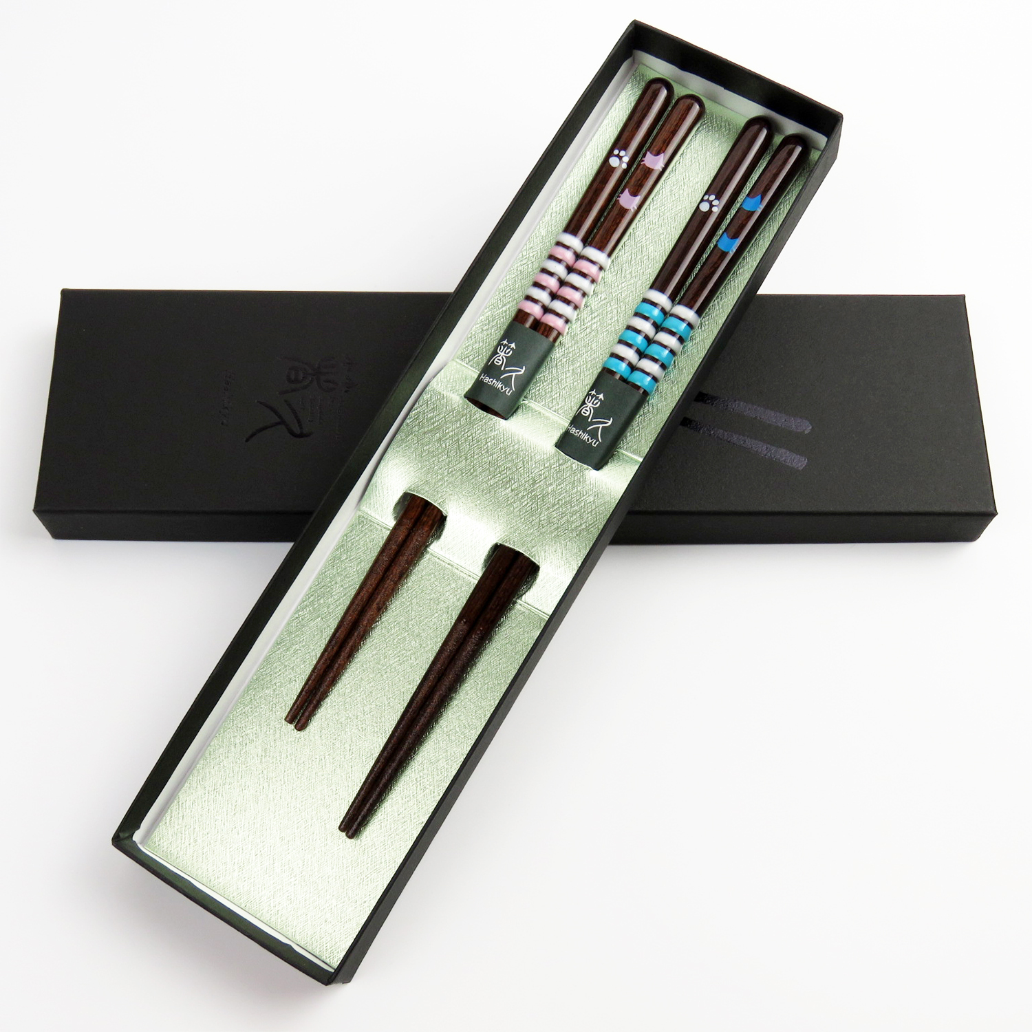 子猫の無邪気に駆け回る様子が浮かんでくるかのようなデザインのお箸の夫婦セットです。