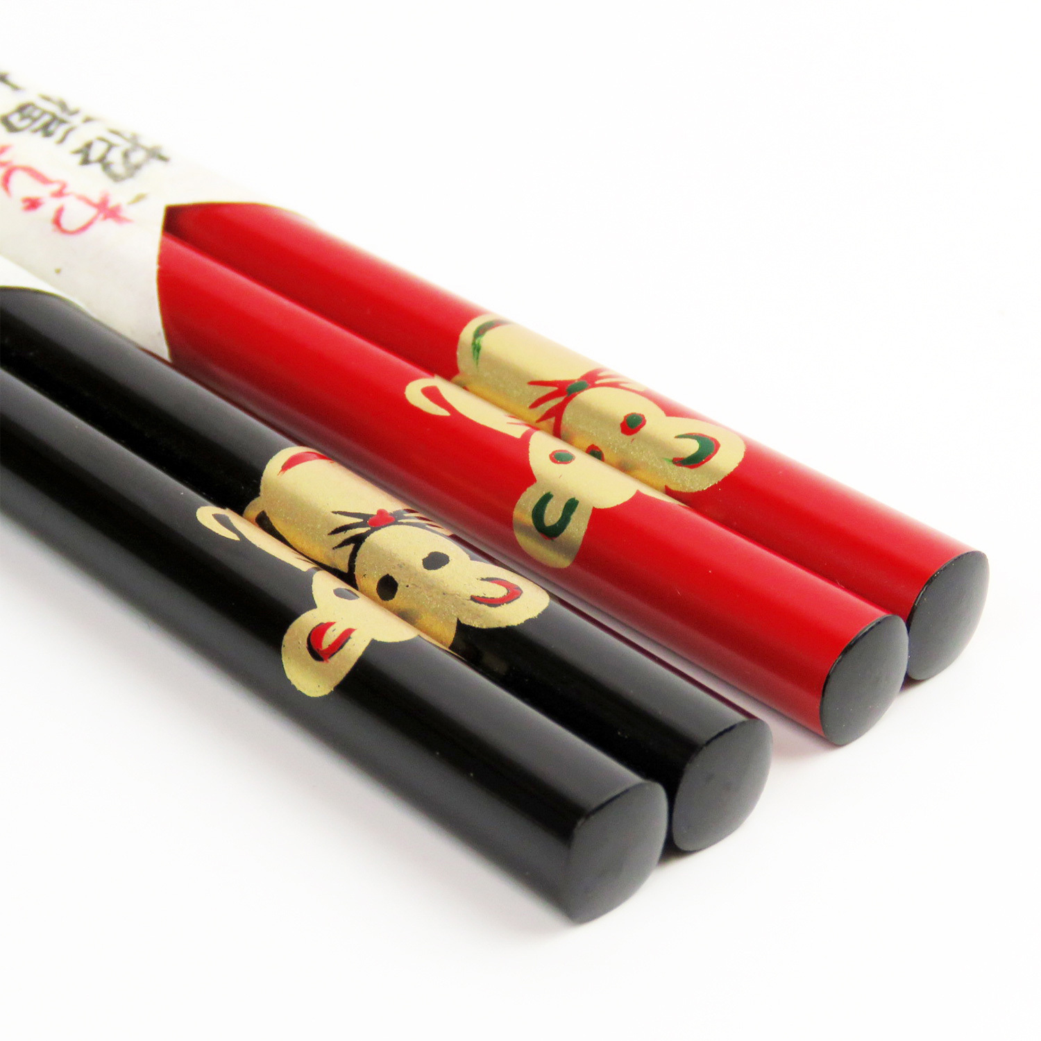 生まれ年の干支は自身の守り神とされお守りとしても重用されています。箸先はすべにくい乾漆仕上げになっています。このお箸は、木地にヒバを使っています。ヒバはヒノキ科の常緑針葉樹で、水湿に耐え心材の保存性が高い事から建築用材や船舶材などに用いられています。